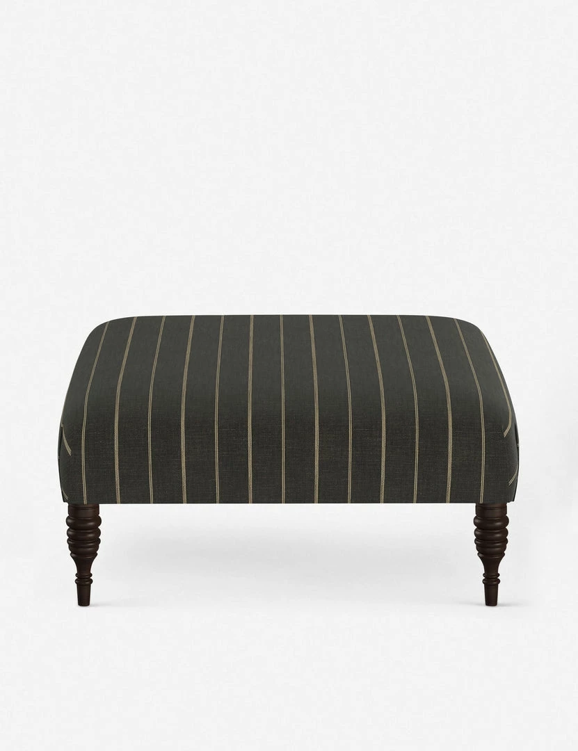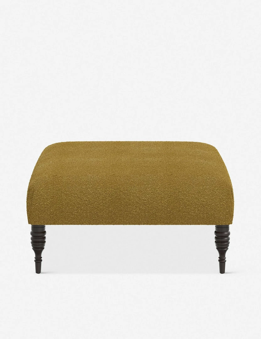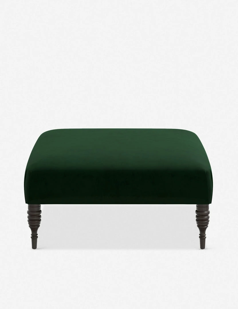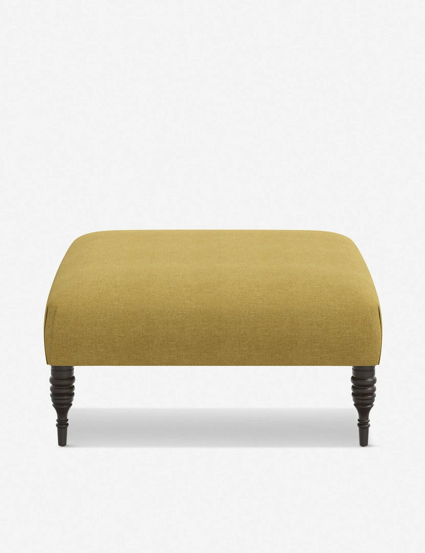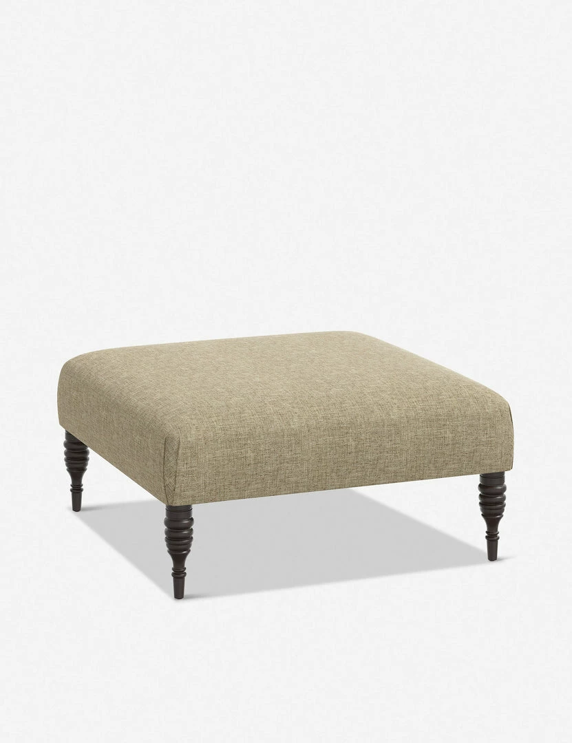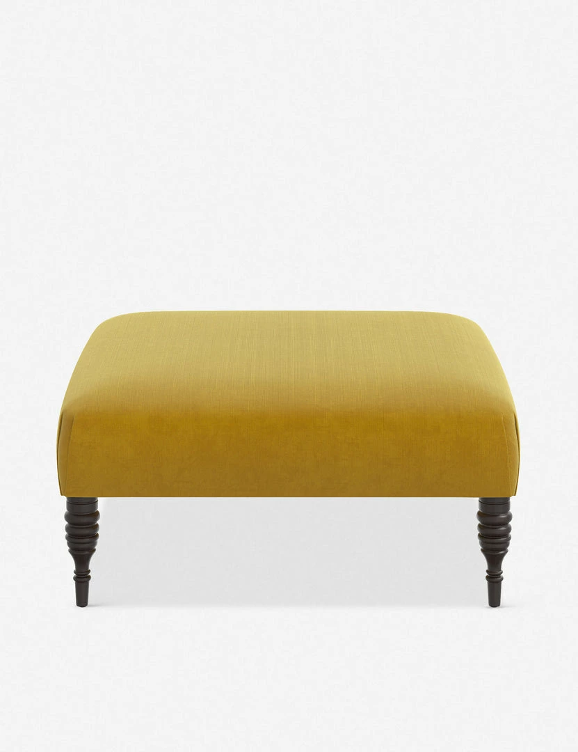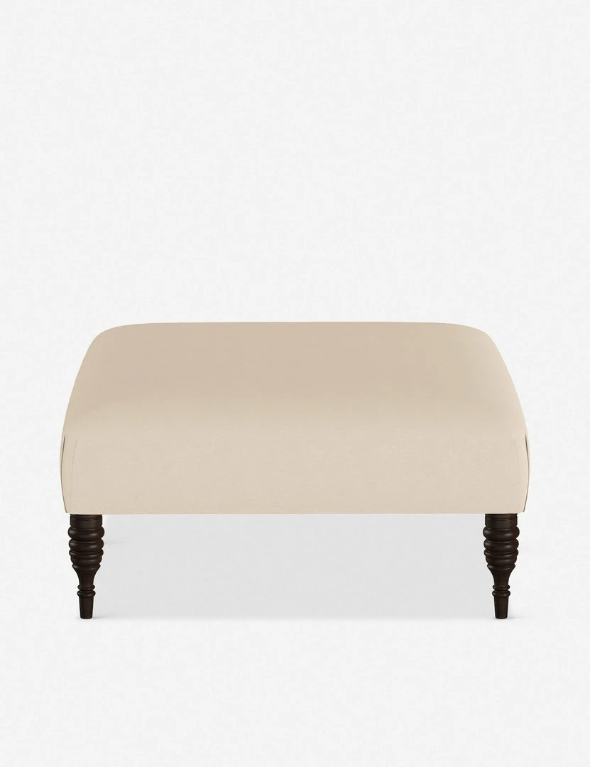 With ornate turned legs and an upholstered top, this ottoman blends traditional details with a fresh design. Its proportions make it an ideal dynamic accent for a living room where it can be used for extra seating or as a coffee table