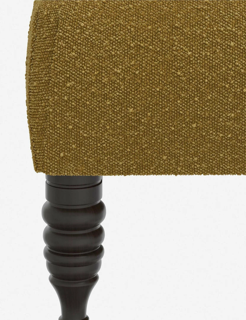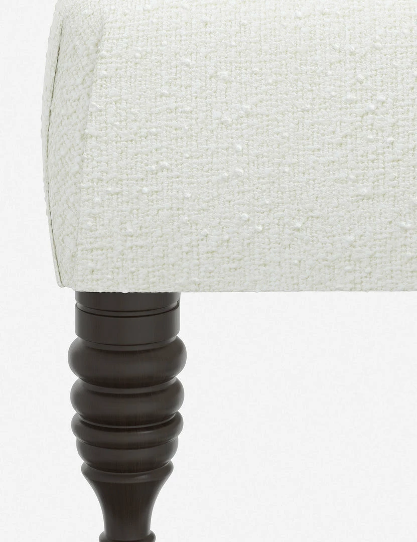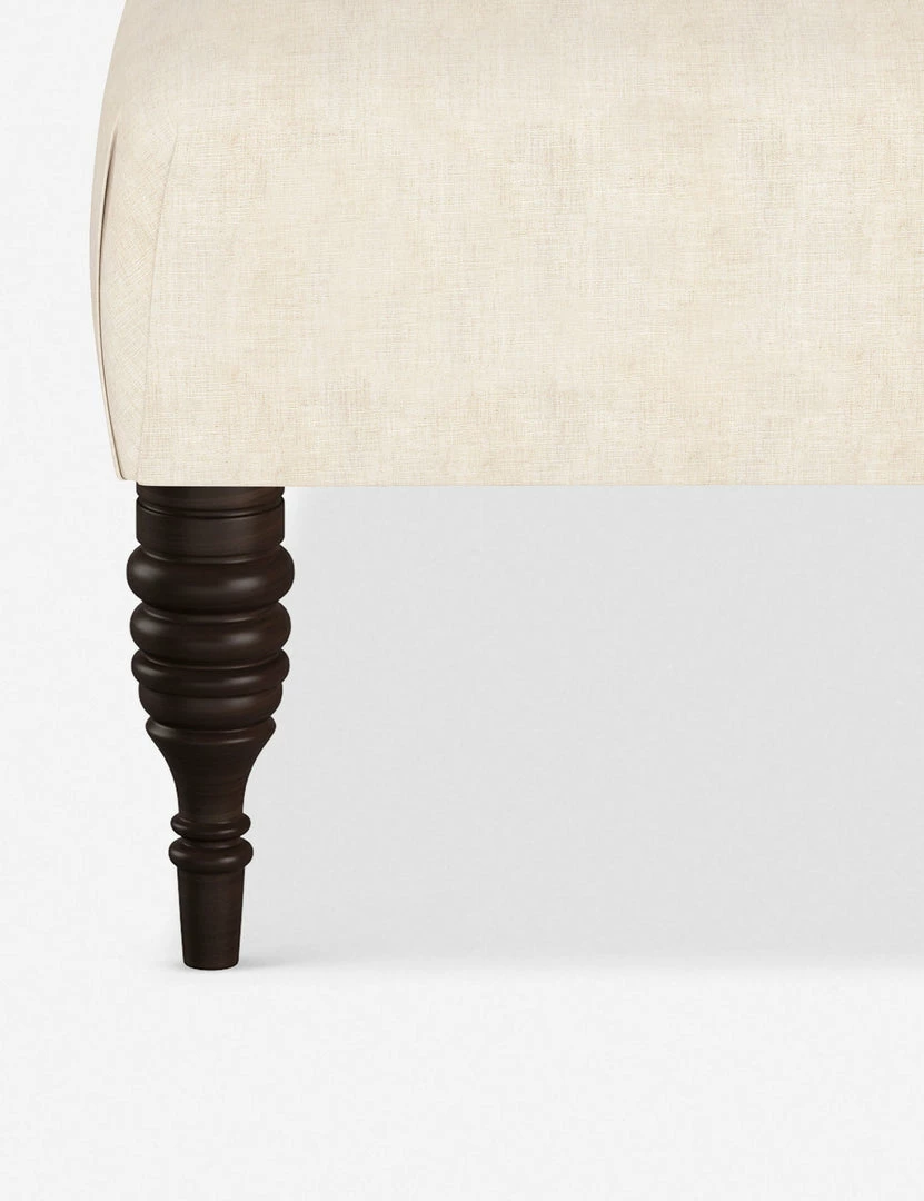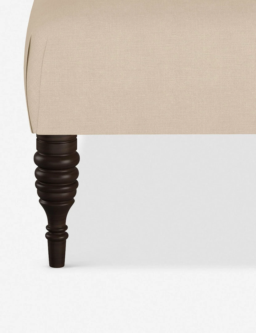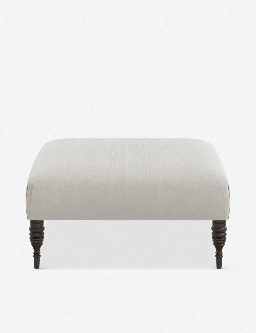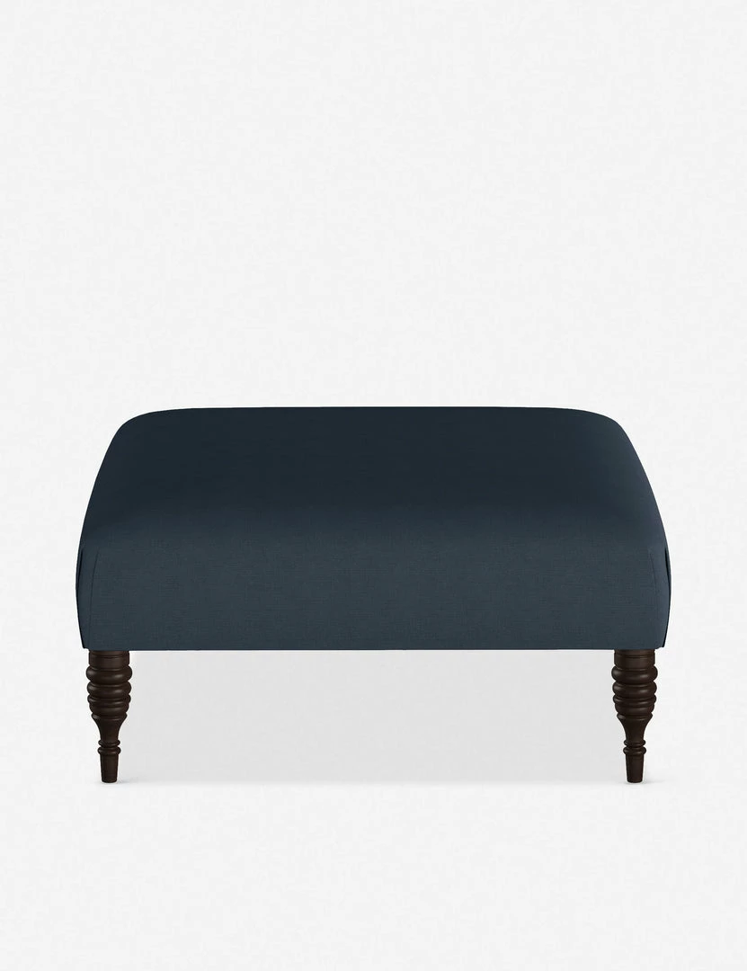With ornate turned legs and an upholstered top, this ottoman blends traditional details with a fresh design. Its proportions make it an ideal dynamic accent for a living room where it can be used for extra seating or as a coffee table