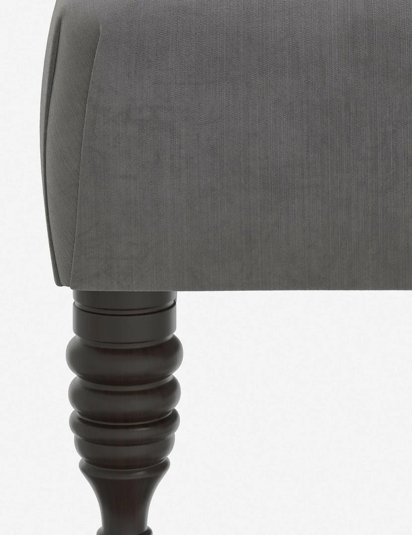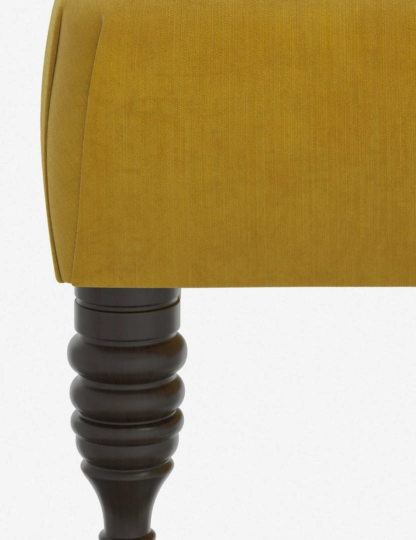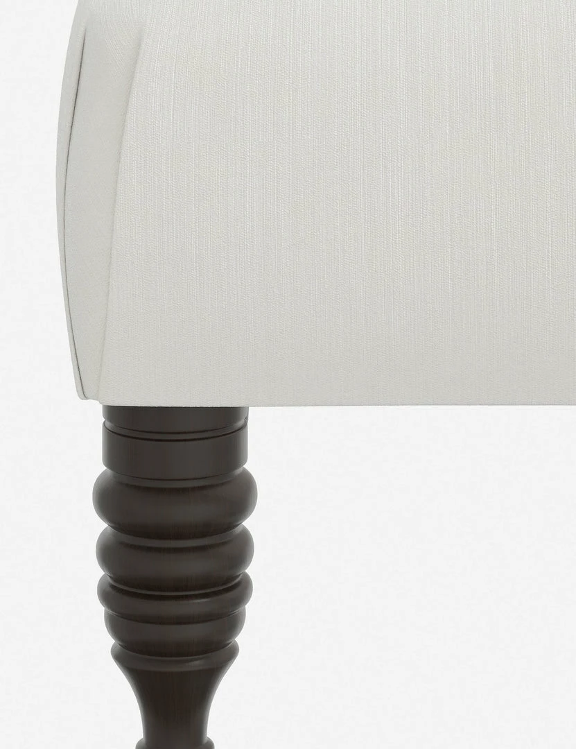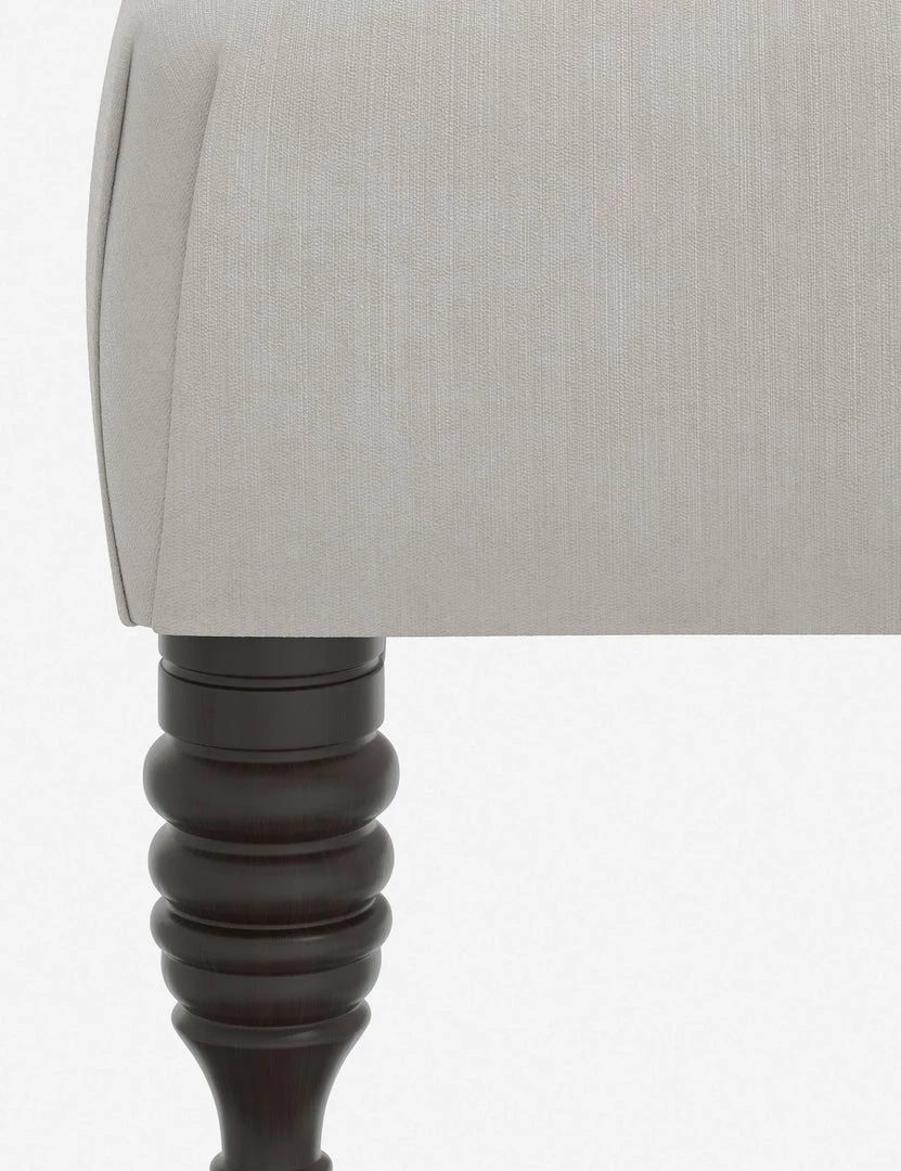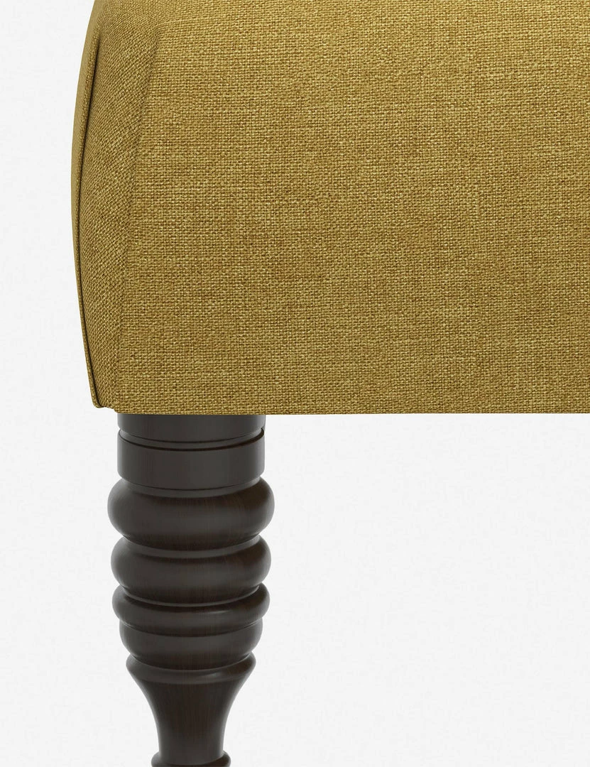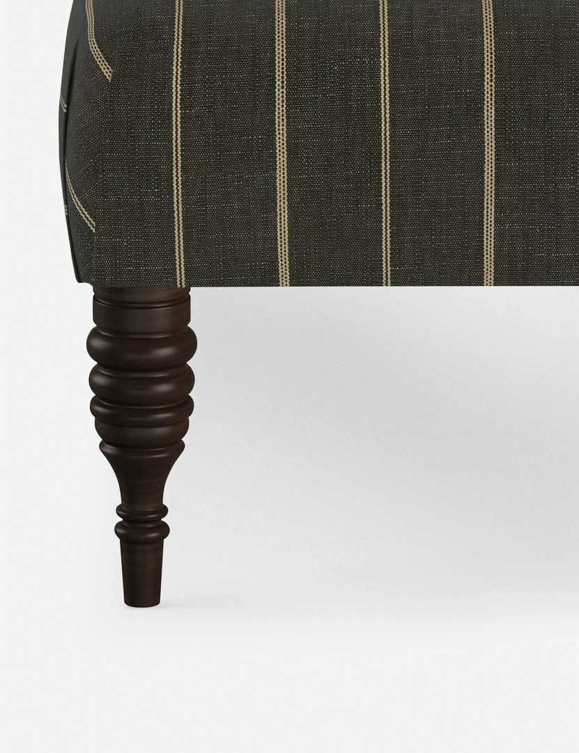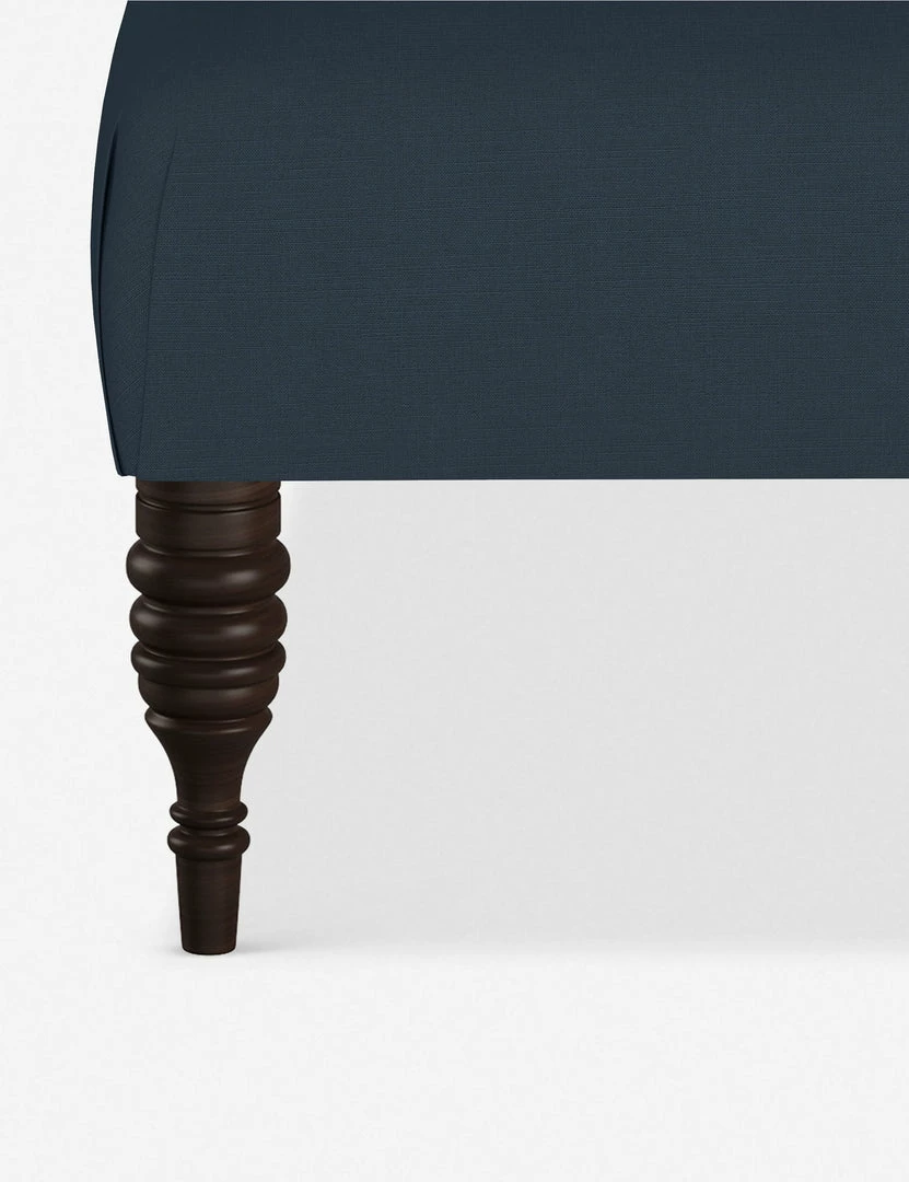 With ornate turned legs and an upholstered top, this ottoman blends traditional details with a fresh design. Its proportions make it an ideal dynamic accent for a living room where it can be used for extra seating or as a coffee table