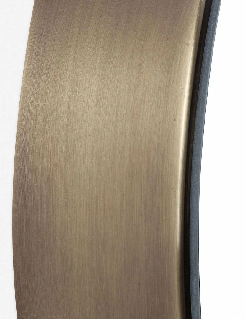 A clean, classic look for any space, this circular mirror featured a deep profile that highlights the brushed brass frame. It’s the perfect accent piece above hallway consoles, bedroom dressers, or even in a stylish bathroom!