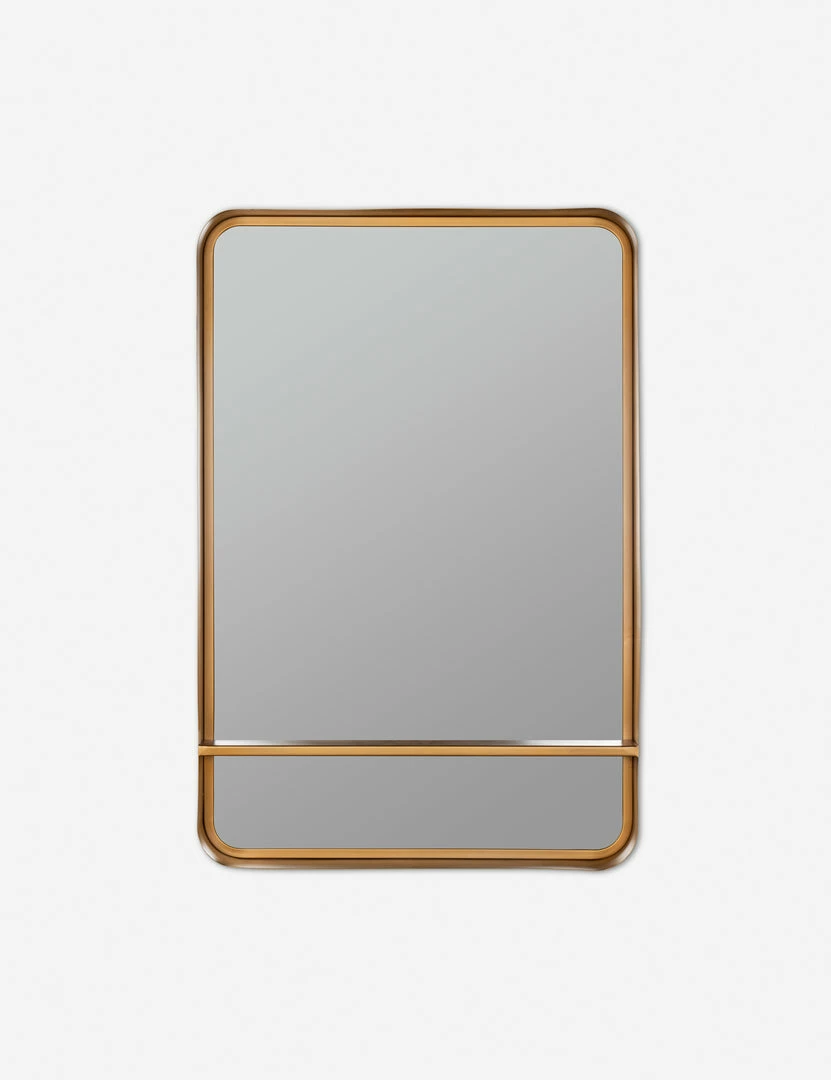 Effortlessly refined, this gold-framed mirror offers a functional touch that will elevate your look. This large mirror design also features a shelf, perfect for a vanity or as a bright reflective backdrop for sculptural decor.