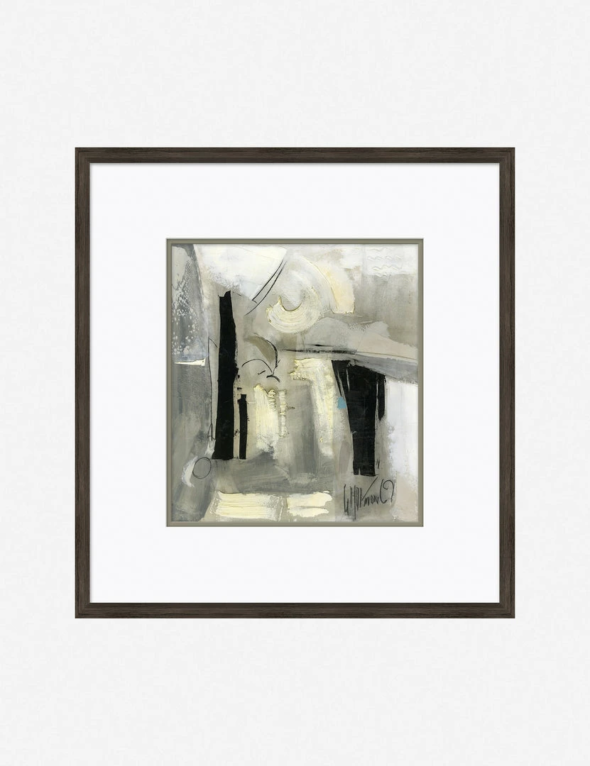 Hang an abstract wall art print in your modern home to tie the entire room together. Featuring interesting brush strokes and neutral colors, this painting print is matted in a simple frame, making it easy to style with other wall decor pieces, too.