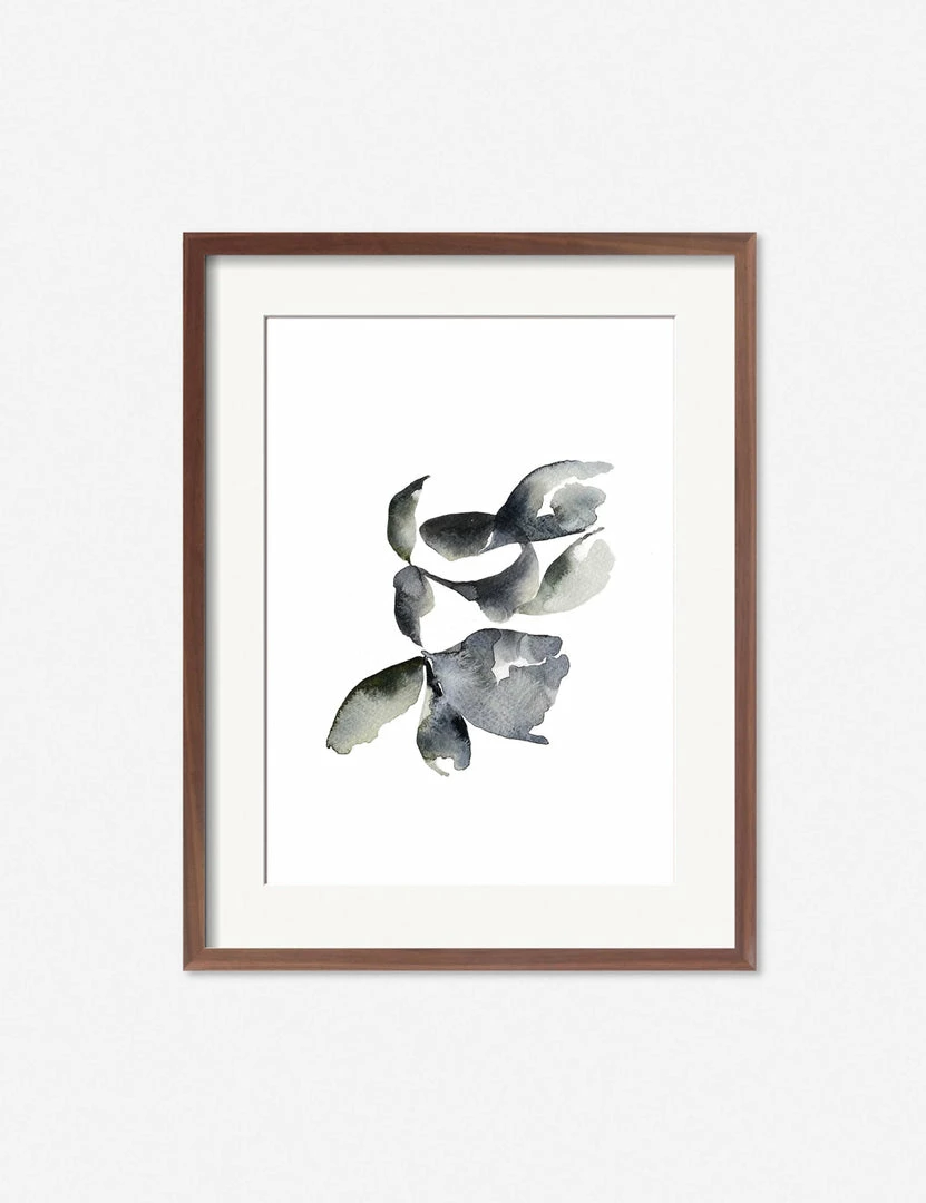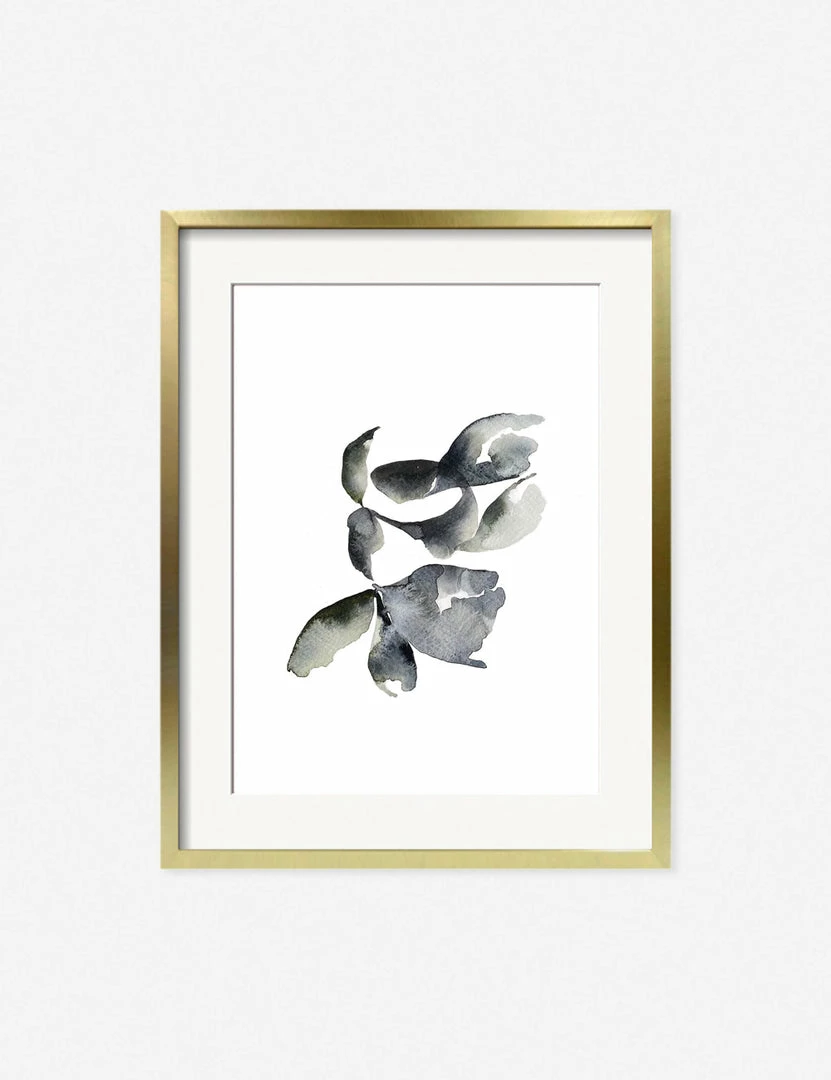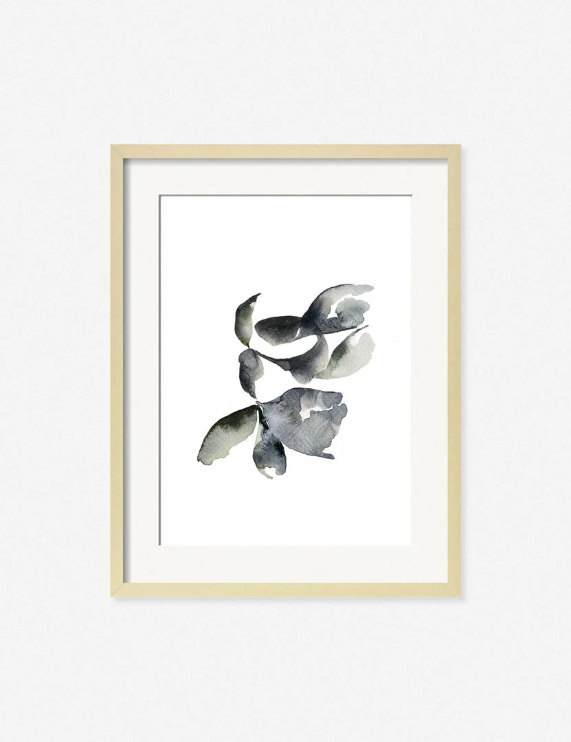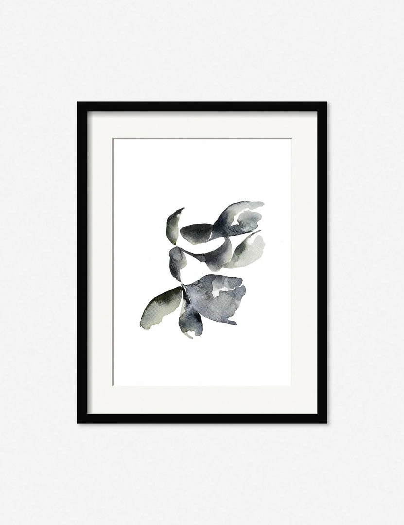 A cool, muted palette creates a delicate floral form at the center of this watercolor print. The minimalist composition imbues this piece with an understated appeal, perfect for a curated art wall or standalone wall artwork in a look that pairs airy profiles with sculptural shapes.
