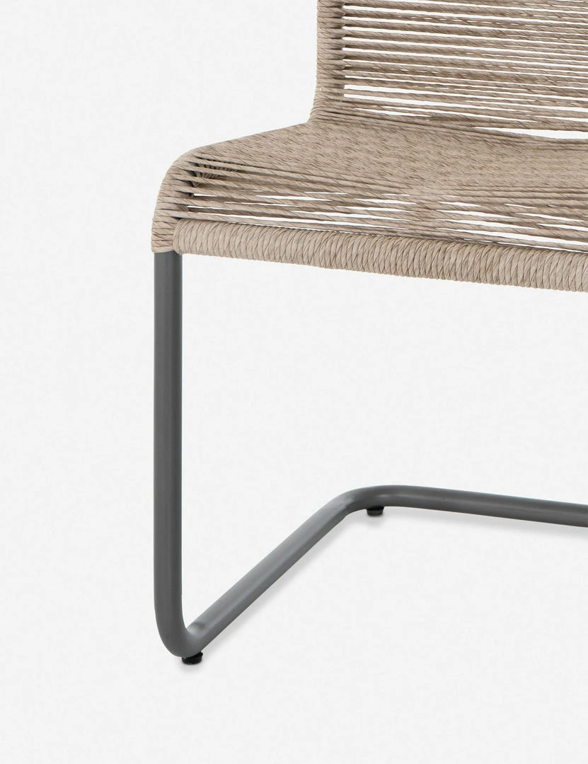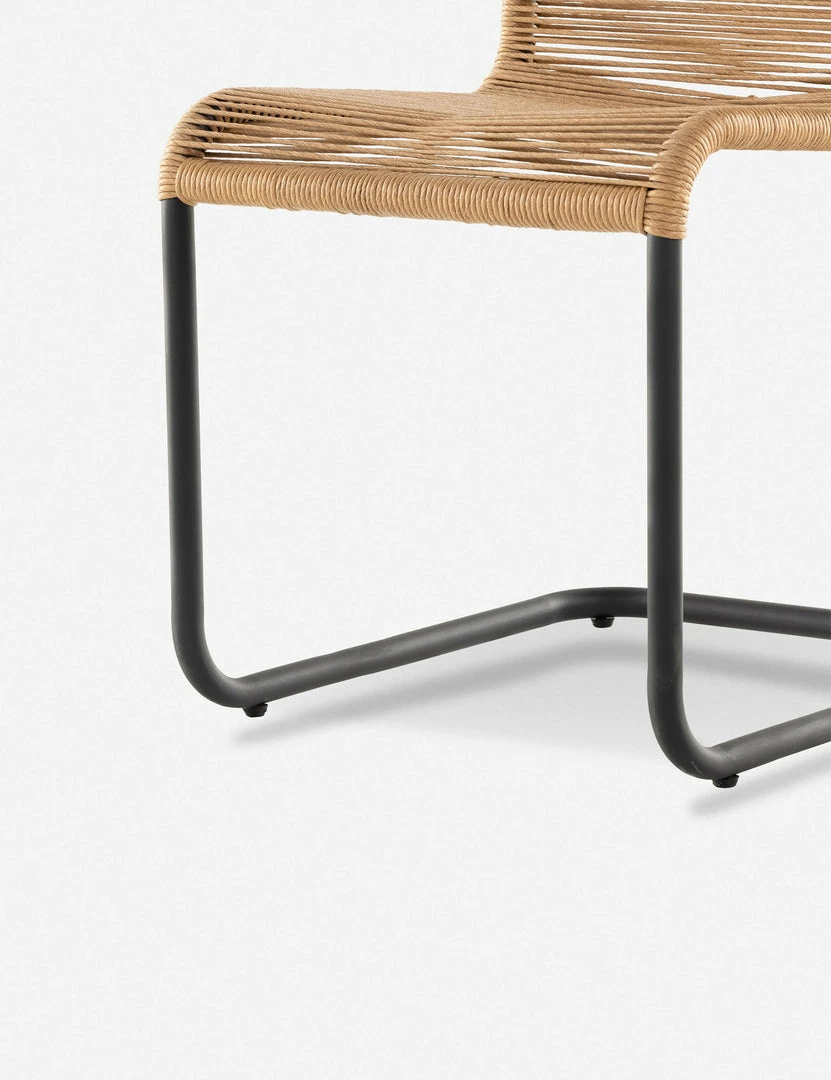 A cantilever design and horizontal woven seat give this dining chair a stunning silhouette. The iron frame and all-weather wicker construction are suitable for indoor or outdoor use so you can style this sculptural dining seat from the kitchen to the patio for dynamic decor.